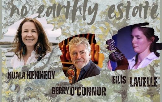 No Earthly Estate was a 2025 project funded by the Arts Council of Ireland which culminated in a concert held in the Patrick Cavanagh Centre in Iniskeen, Co. Monaghan on the 6th September 2025. A varied programme of Oriel music and song was presented and perfromed by Gerry O'Connor, Co. Louth (fiddle and Stroh violin), Nuala Kennedy, Co. Louth (flute, whistle and voice) and Eilís Lavelle, Co. Monaghan (harp).